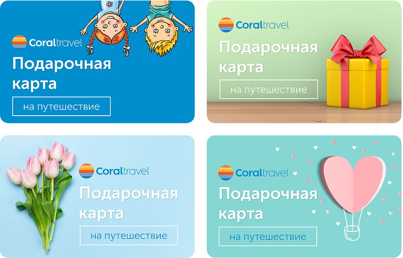 Сделайте подарок уникальным и неповторимым с помощью индивидуального дизайна Подарочной карты на путешествие Coral Travel.